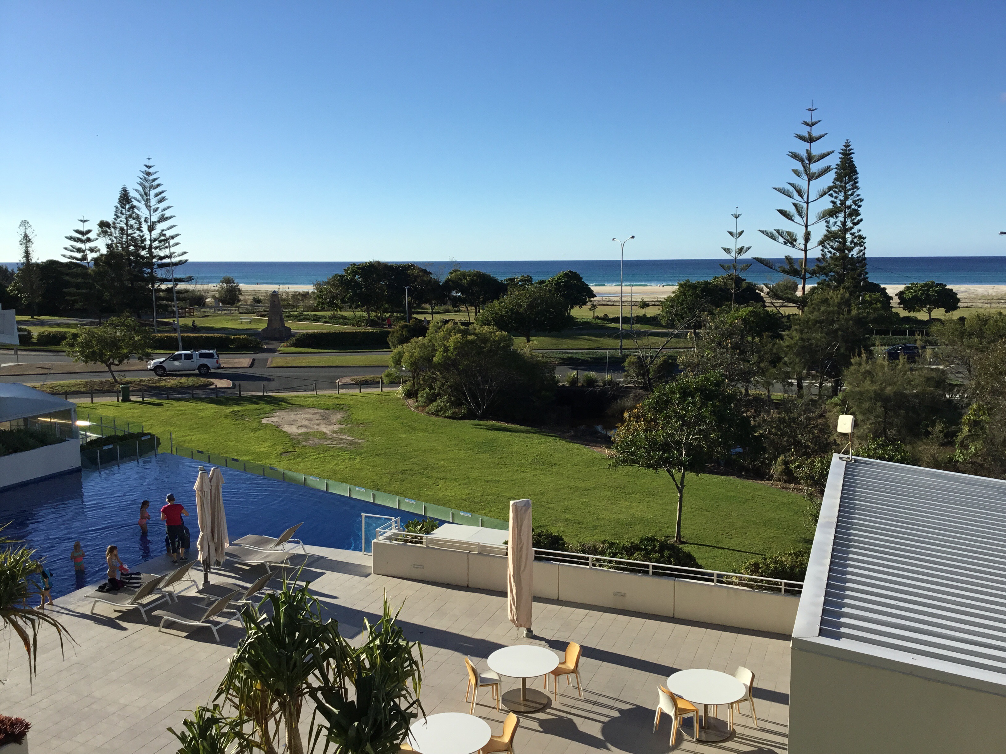 This has nothing to do with writing …. Although I did ponder how, with this view from my weekend accommodation at Coolangatta, Queensland’s most southerly town on the Gold Coast before the New South Wales border, a writer might conjure up dark and fantastic worlds or grim and horrific murders in crime fiction. It was bright, around 23 degrees C, an almost cloudless sky, bathed in bright sunshine. It was weather designed to brighten any mood.